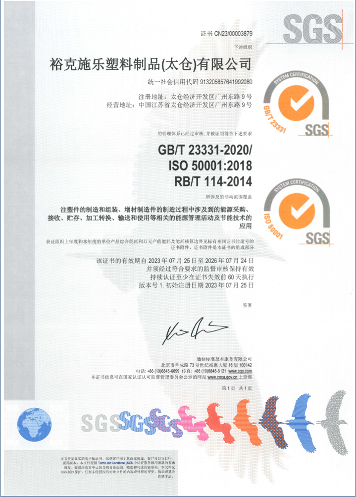 根据集团可持续发展要求,裕克施乐成立了以亚太区执行副总裁为首,体系管理部和设备部为主的能源管理中心,从2023年1月份筹备能源体系建立,并于7月份通过了第三方认证审核。